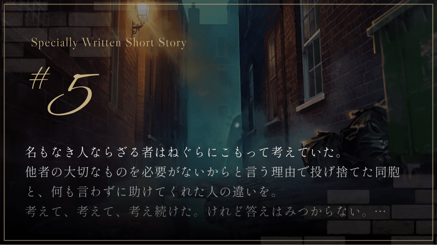 名もなき人ならざる者はとぼとぼと歩き出し、人気のない暗い路地に帰るしかなかった。
